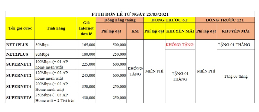 * Trang bị miễn phí Modem WIFI cao cấp & 02 thiết bị Homewifi 2 băng tần trong suốt thời gian sử dụng.